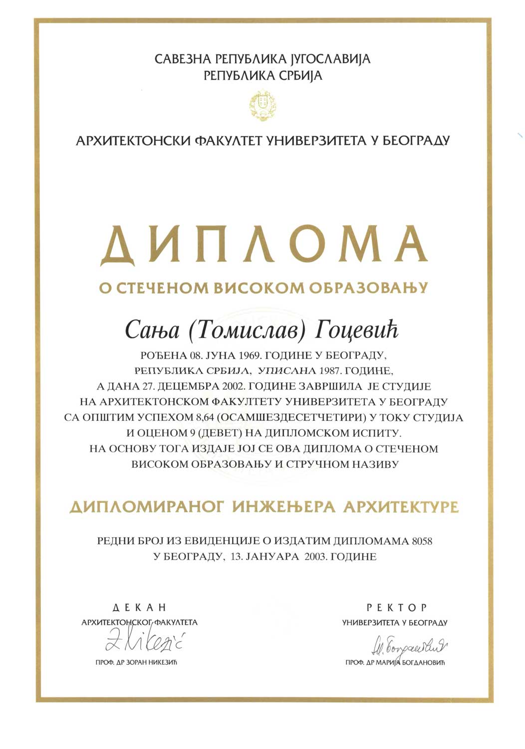Obtained: Diploma - Engineer of Architecture - equivalent to vocational