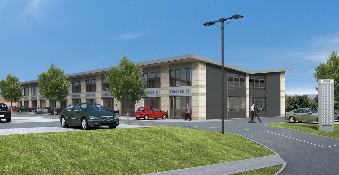 It is intended that the building will accommodate 24 no. individual small business storage units for different activities. Each unit will have its own signage for identification. A positive proportion of the façades is glazed to provide a good level of natural light into the units. A rhythm is created by columns finished to a high standard stone cladding in a combination of polished and brushed finishes, and defines the individual units. The roof overhangs the façade to give some solar protection and improve the general appearance of the building. The roof overhang will have selected downward public space lighting to the underside. The other buildings at the site in this location are simple and it is suggested that some variety in the design approach and quality is to be welcomed.